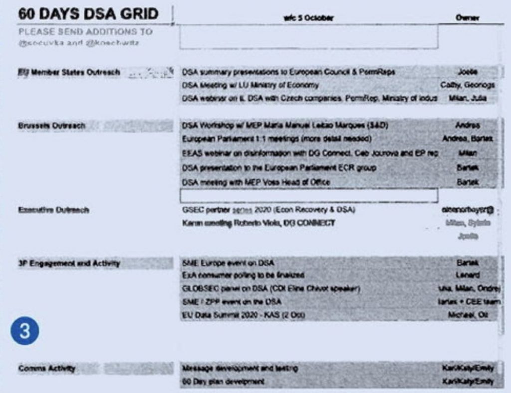 Tiefe Einblicke in die Lobbyarbeit der Techkonzerne zu DSA und DMA haben wir über ein Leak der Google Lobbystrategie durch die französische Zeitung Le Point erhalten. Das Dokument legte schwarz auf weiß dar, wie Google aggressiv und mit viel Lobbypower gegen die neuen Regeln für digitale Plattformen vorgeht. Eine genaue Auswertung haben wir zuvor hier vorgenommen.