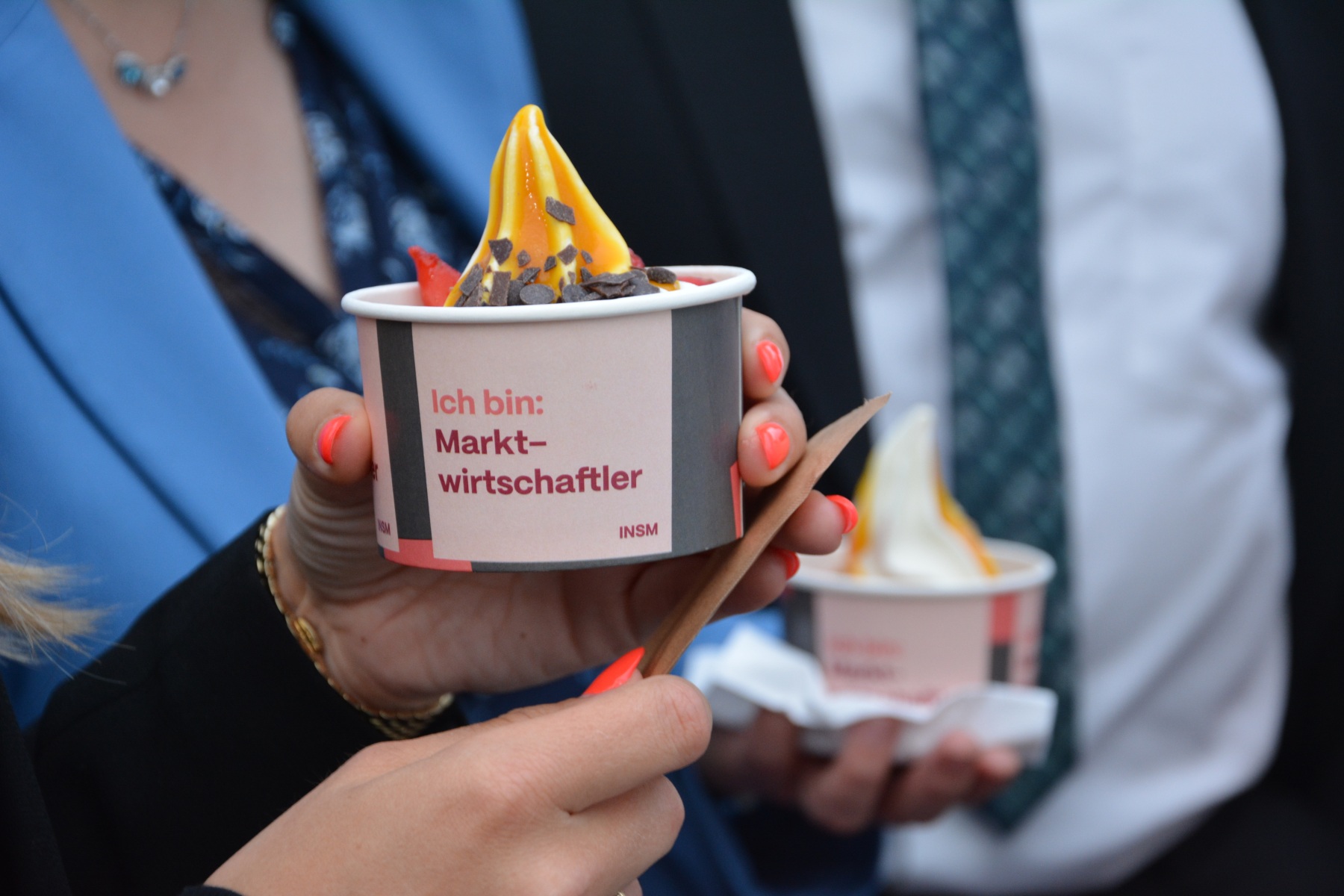 Das üppige Festgelände ähnelt mit zahlreichen Unternehmenslogos einer kleinen Messe. Hier lässt sich beispielsweise von der INSM gesponsertes Eis essen. Die INSM fällt immer wieder durch fragwürdige Kampagnen auf und trat in den Jahren 2024 und 2025 auf Konferenzen mit Nähe zur MAGA-Bewegung auf.