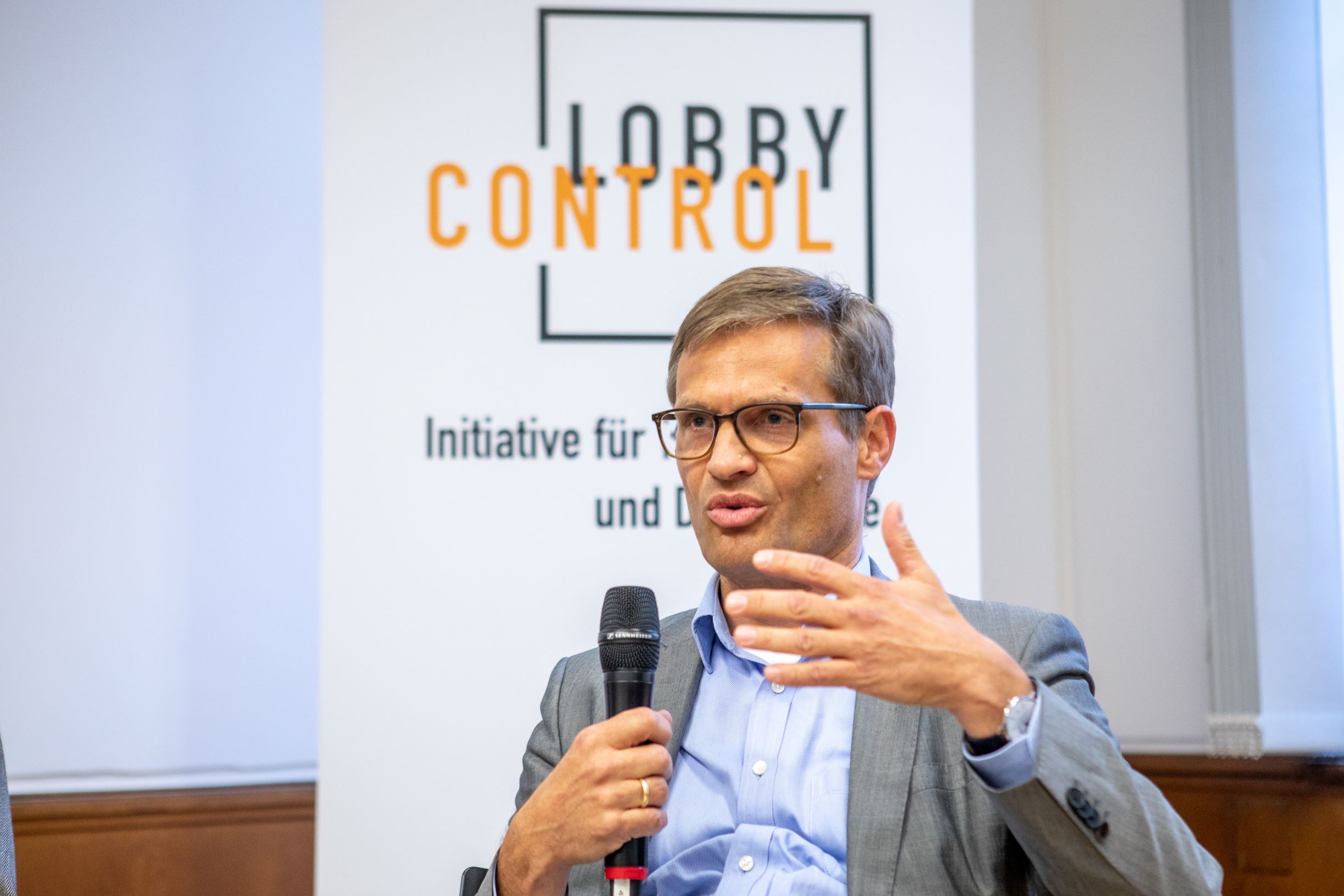 Einen Konsens – immerhin – gab es beim Thema Transparenz. So bezeichnete Scheel das Lobbyregister als ein „berechtigtes Anliegen“ über das sein Verband intern diskutiere. VCI-Lobbyist Theis wiederum durfte die Initiative seines Verbands mit Transparency Internation für mehr Lobbytransparenz (Lobbyregister, Legislative Fußspur, Lobbybeauftragter) ausführlich vorstellen.